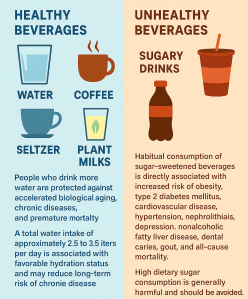 Meta-analyses studying sugary drink studies and umbrella reviews that consolidate information from meta-analyses demonstrate that habitual consumption of sugar-sweetened beverages is associated with increased risk of obesity, type 2 diabetes mellitus, stroke, cardiovascular disease, dementia, hypertension, nephrolithiasis, depression, nonalcoholic fatty liver disease, dental caries, gout, and all-cause mortality. High dietary sugar consumption is generally harmful and should be avoided.